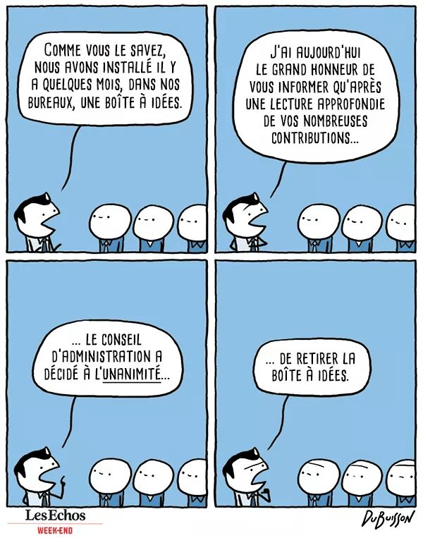 Fais comme Steve Jobs : mets un col roulé noir et organise toi-même le show. Déjà personne ne peut te parler / t'interrompre, et en plus t'es le seul à pas avoir froid dans l'air conditionné.